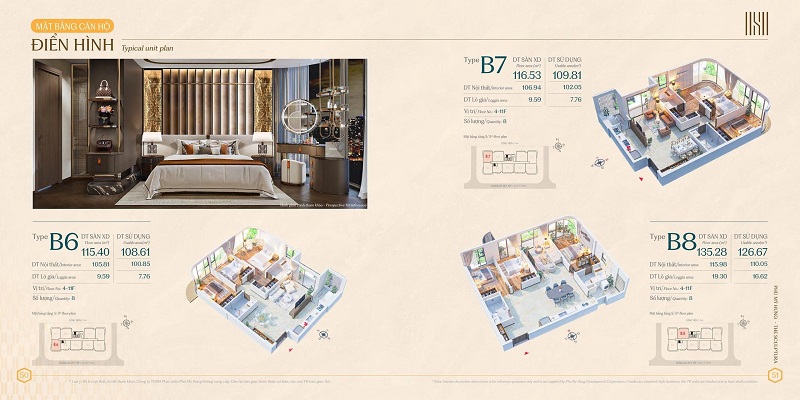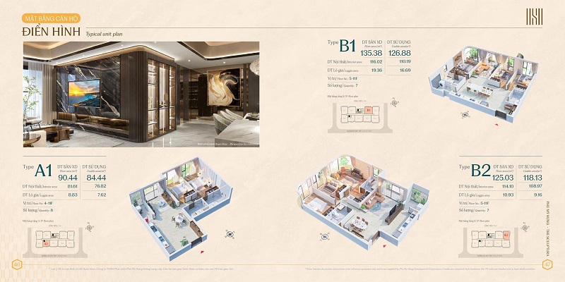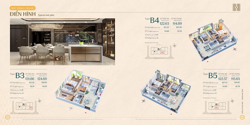 | Căn hộ 3 Phòng Ngủ – 62 căn | 115 – 135m² | Từ 180 – 190 triệu/m² |