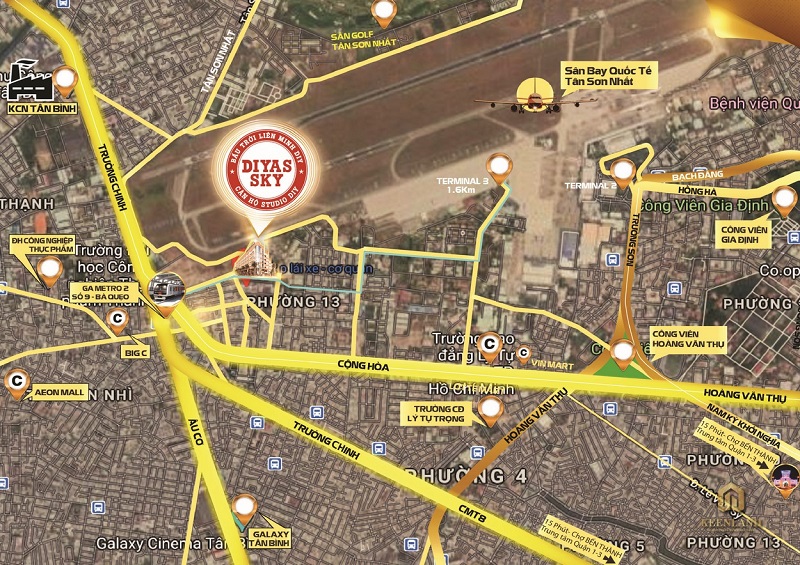 Một lợi thế nổi bật của DIYAS SKY là liền kề sân bay Tân Sơn Nhất, đặc biệt gần khu vực Nhà ga T3, rất thuận tiện cho cư dân thường xuyên di chuyển bằng đường hàng không cũng như khai thác cho thuê đối với nhóm khách làm việc tại sân bay và khu vực lân cận.