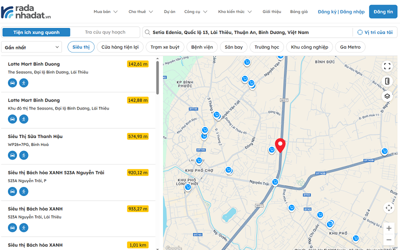Ví dụ: Nhập “Setia Edenia Lái Thiêu“, bạn đã có thể kiểm tra chính xác: