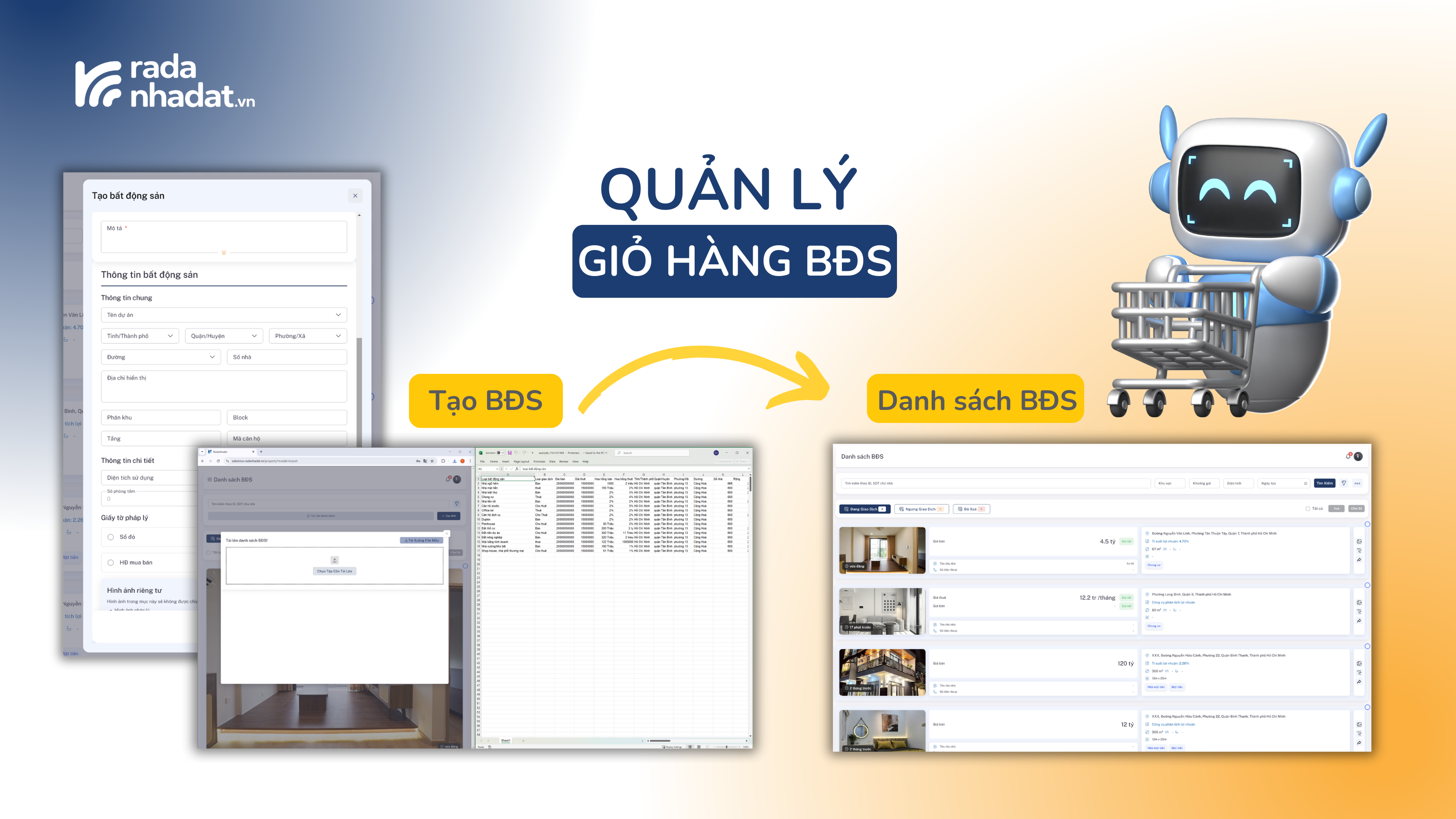 🔹 Nhập dữ liệu từ file Excel: Hệ thống hỗ trợ tải danh sách BĐS chỉ trong vài phút