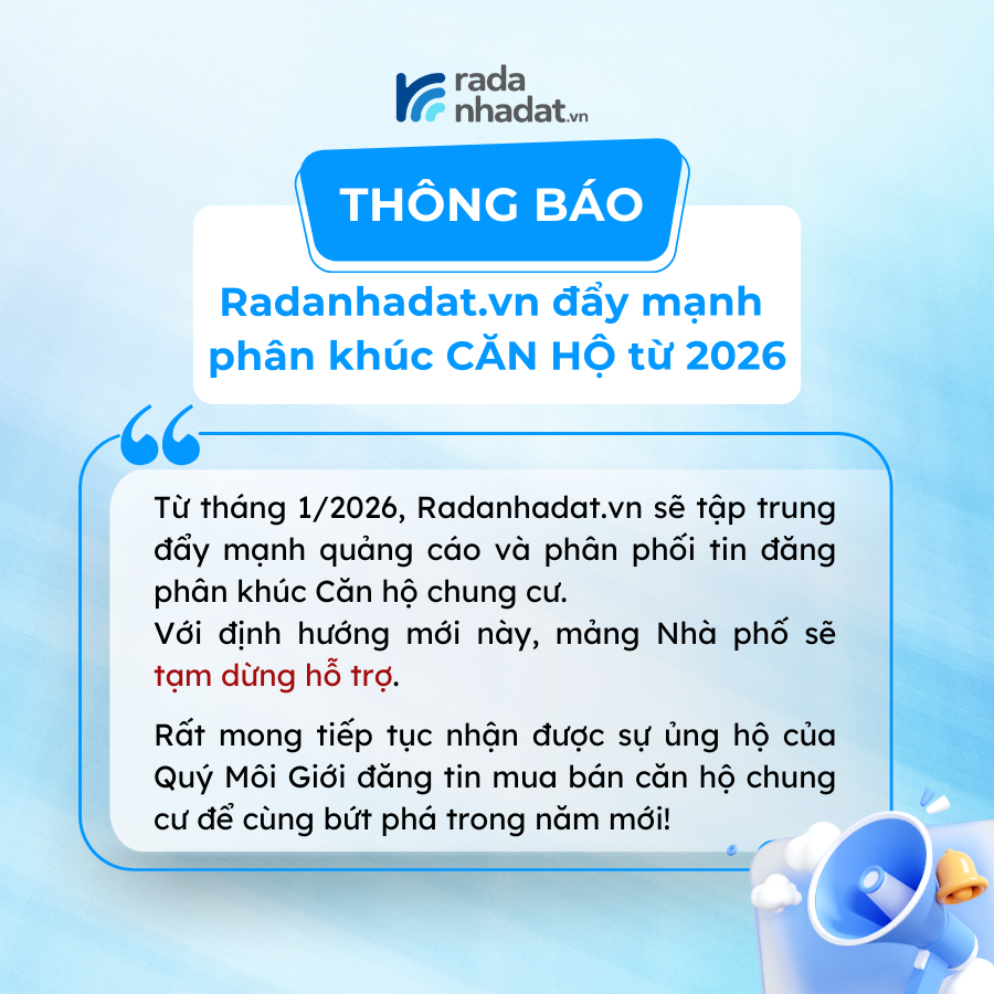 Nhằm phù hợp với định hướng phát triển trong giai đoạn tiếp theo, từ tháng 01/2026, Muanha.xyz sẽ điều chỉnh phạm vi hoạt động, tập trung vào phân phối vào quảng cáo tin đăng thuộc phân khúc căn hộ chung cư.