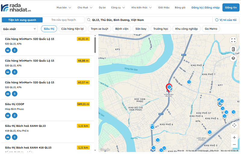 Để đưa ra quyết định chính xác và an tâm khi chọn nơi an cư, công cụ Khám phá khu vực của Muanha.xyz sẽ là trợ thủ đắc lực. Chỉ cần nhập vị trí của bạn, hệ thống sẽ ngay lập tức hiển thị khoảng cách đến siêu thị, bệnh viện, trường học và các tiện ích quan trọng khác xung quanh, giúp bạn dễ dàng đánh giá và lựa chọn nơi sống phù hợp nhu cầu.