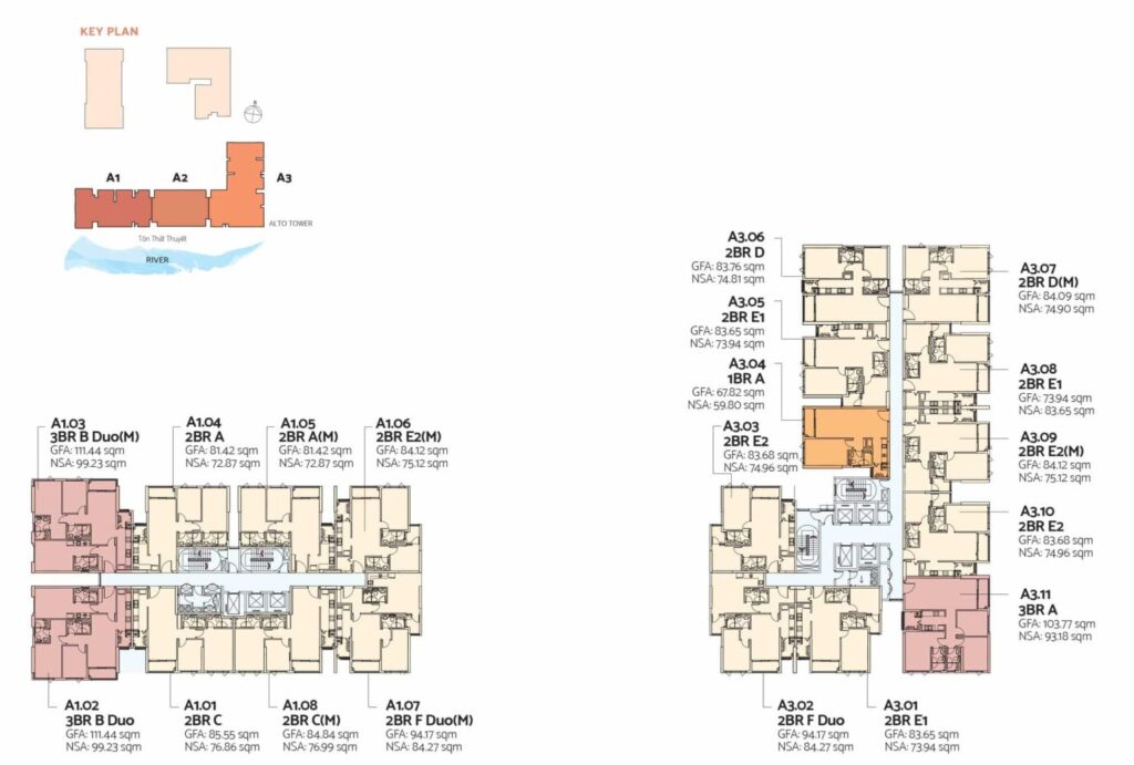 Tháp Alto cao 23 tầng, 482 căn hộ, được chia thành 3 khu riêng biệt (A1, A2, A3) và được bố trí 10+ tiện ích ở tầng 14.