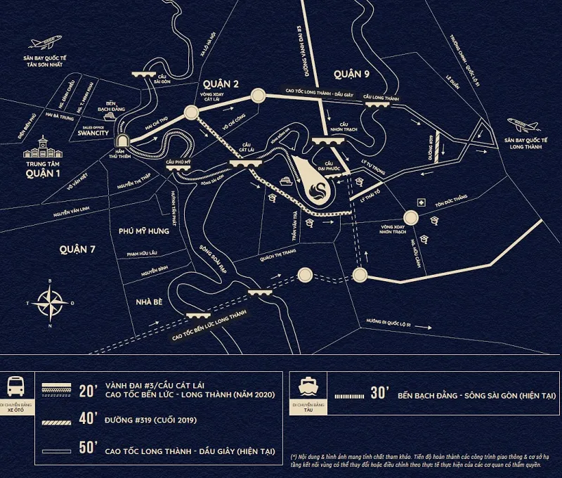 Từ trung tâm TP.HCM, cư dân có thể đến Swanbay chỉ trong 30 phút di chuyển bằng đường thủy. Đặc biệt, khi dự án đường Vành đai 3 và cầu Nhơn Trạch hoàn thiện, kết nối Đại Phước với quận 9 qua 8 làn xe cao tốc, thời gian di chuyển bằng đường bộ từ TP.HCM đến đảo Đại Phước sẽ rút ngắn chỉ còn khoảng 25 phút.
