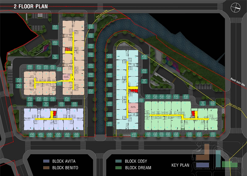 – Gồm 2 Phân khu, 2 Tầng hầm riêng biệt, 15 Tầng nổi – 4 Tháp: DREAM, COSY, AVITA, BENITO Cung ứng 460 sản phẩm nhà ở |