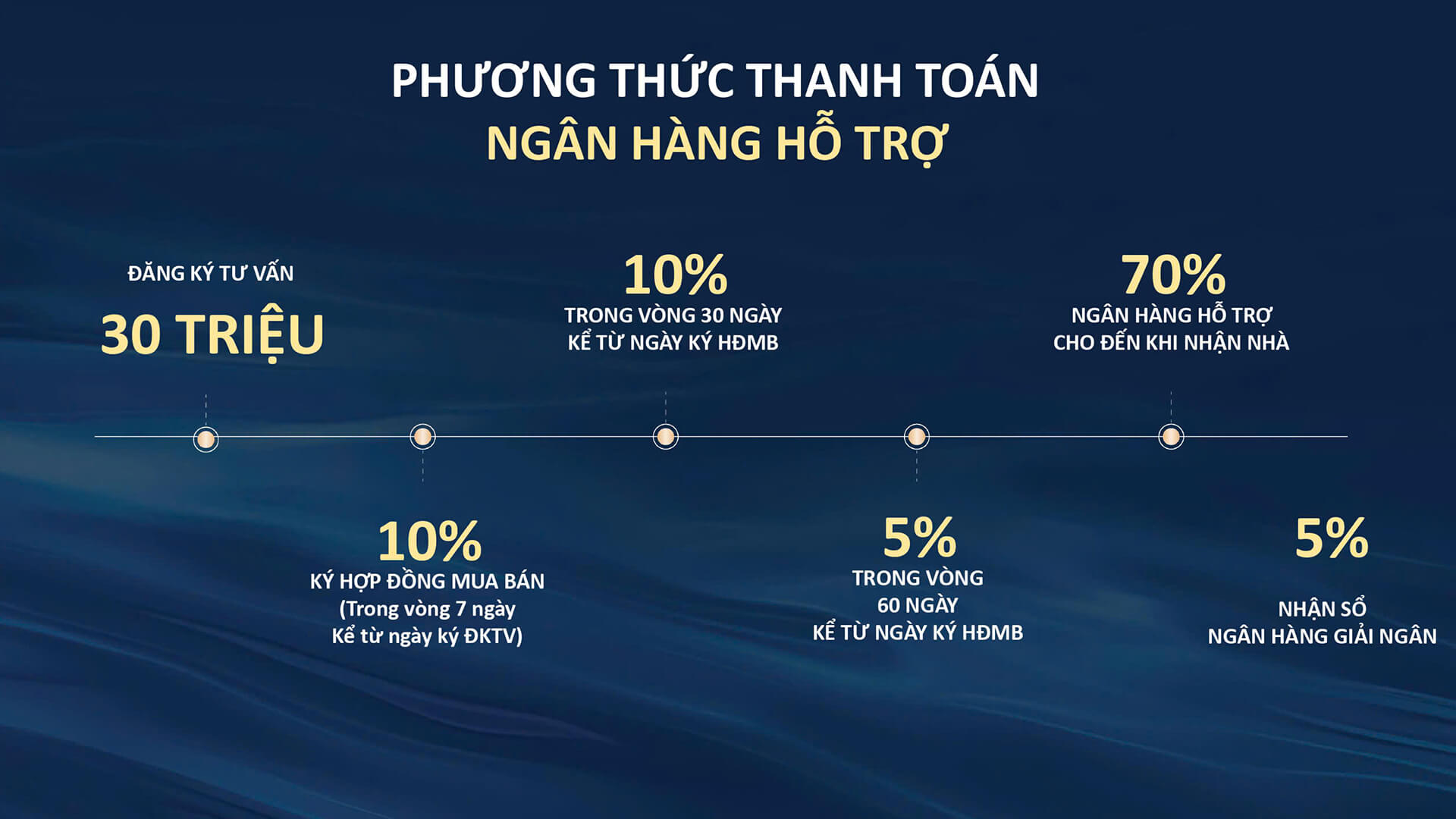 Chính sách thanh toán linh hoạt: chỉ cần 10% giá trị để sở hữu ngay, sau đó trả 2%/tháng trong 24 tháng, giúp giảm áp lực tài chính cho người mua ở thực.
