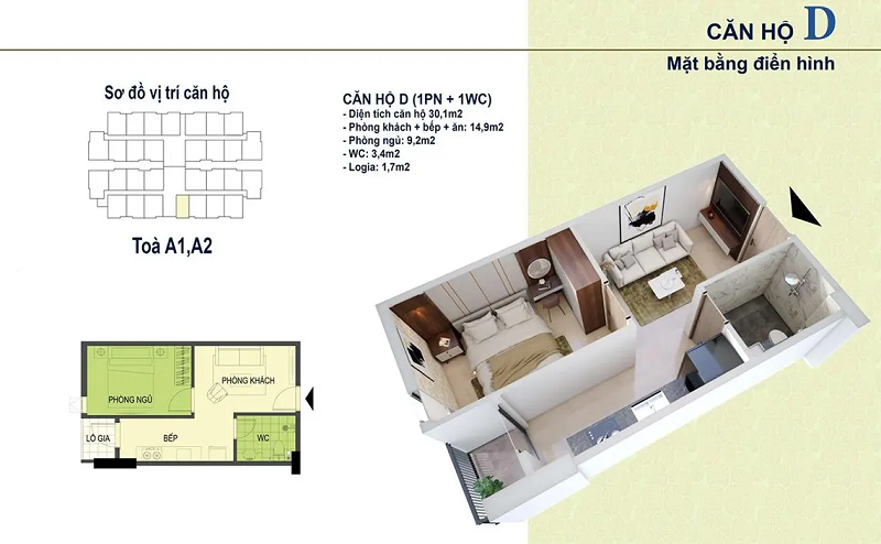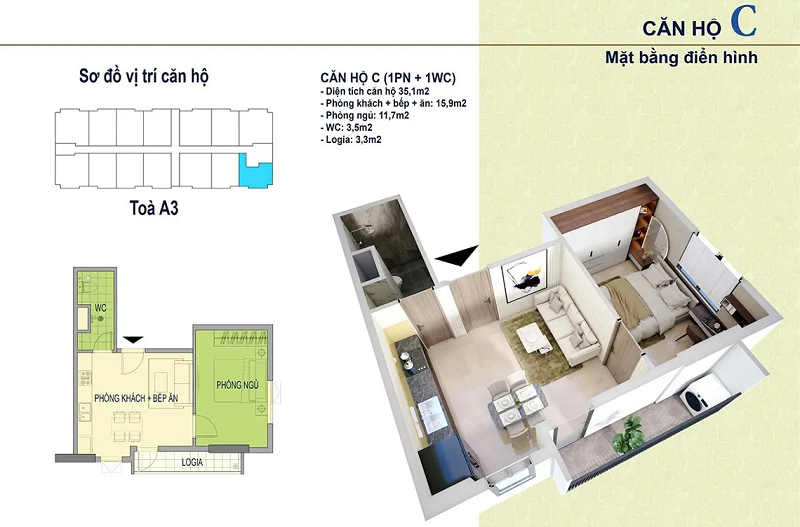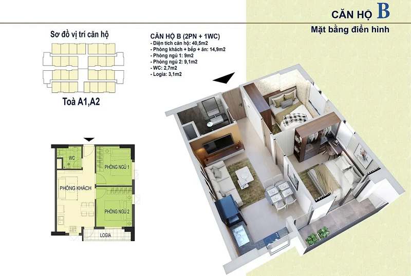 - Thiết kế thông minh: Căn hộ được bố trí hợp lý, đón sáng tự nhiên, đa dạng diện tích từ 30–70m², phù hợp cho mọi nhu cầu sử dụng.