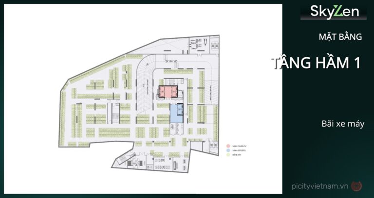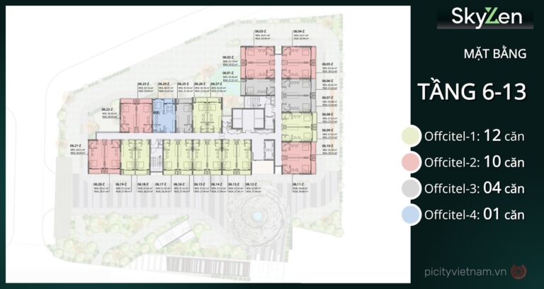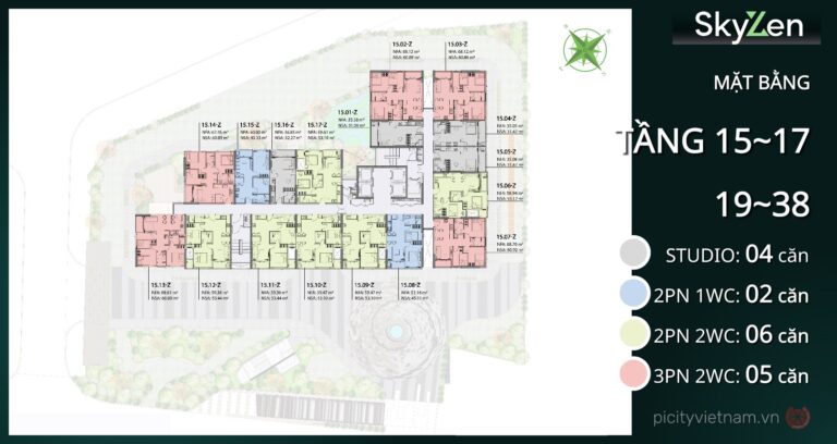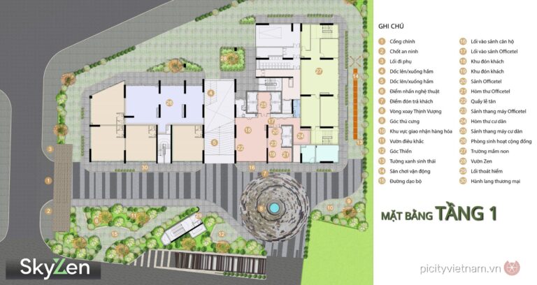 Mặt bằng Picity Sky Zen Phạm Văn Đồng được quy hoạch thông minh với 1 block duy nhất, bố trí officetel tại tầng thấp (2-13), căn hộ cư trú từ tầng 14-38, shophouse tầng 1 và tiện ích tập trung tại tầng 1, 5, 38-39. Thiết kế hình khối hiện đại, tối ưu thông gió và ánh sáng tự nhiên cho 100% căn hộ, mật độ thang máy cao đảm bảo sự riêng tư và tiện lợi.