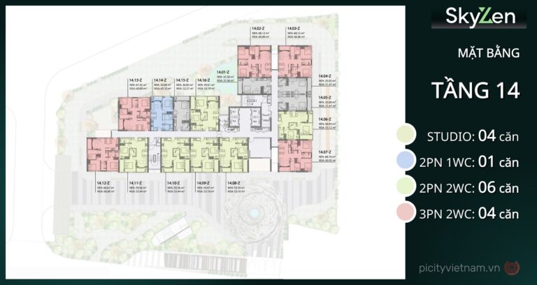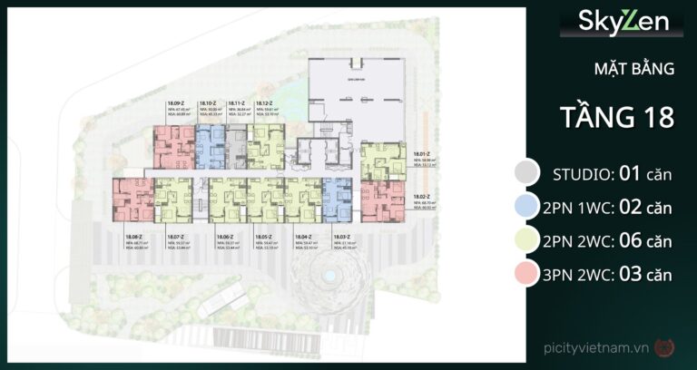 Diện tích linh hoạt bao gồm studio 36-37 m², 1PN 36-48 m², 2PN 50-59 m², 3PN 66-68 m², phù hợp cá nhân đến gia đình. Picity Sky Zen Phạm Văn Đồng mang đến không gian sống thoáng đãng, xanh mát với vườn treo và mảng xanh xen kẽ, nâng tầm trải nghiệm sống đô thị.