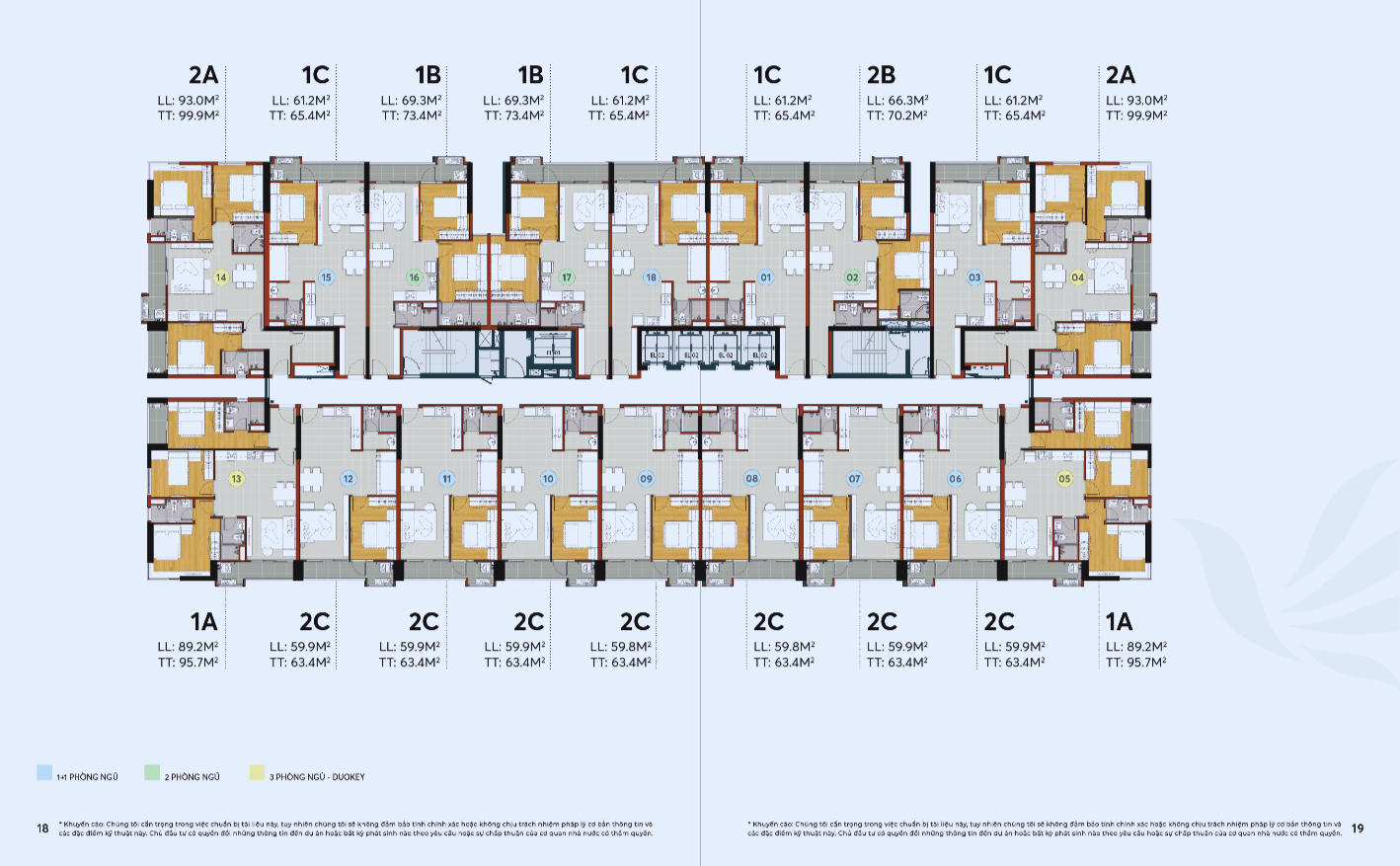 Mặt bằng tổng quan của dự án được quy hoạch tinh tế trên quy mô 20 tầng, với 337 sản phẩm căn hộ phân bổ đều đặn 18 căn mỗi sàn, đảm bảo mật độ xây dựng thấp và thông thoáng tối đa. Tầng hầm rộng lớn dành cho đỗ xe thông minh, tầng 1-2 tập trung thương mại và tiện ích công cộng, từ tầng 3 trở lên là khu căn hộ điển hình với hành lang rộng rãi và thang máy tốc độ cao.
