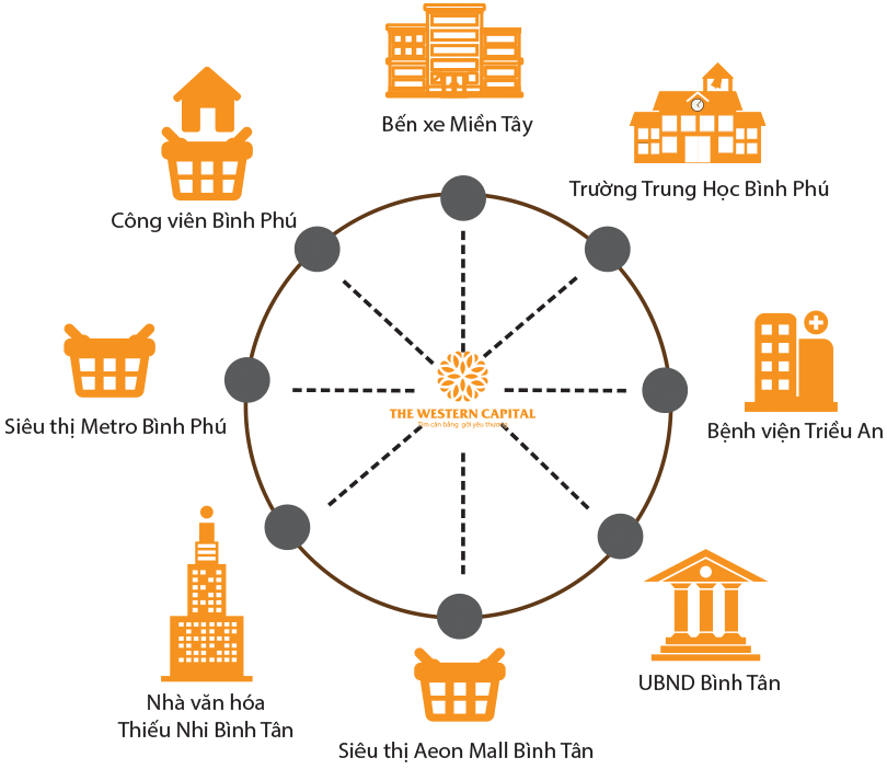 Từ The Western Capital, cư dân chỉ mất vài phút đến các tiện ích ngoại khu thiết yếu: