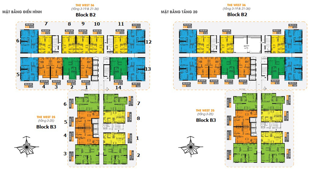 - Block B3 (25 tầng) nhỏ gọn hơn với 192 căn gần tiện ích xanh