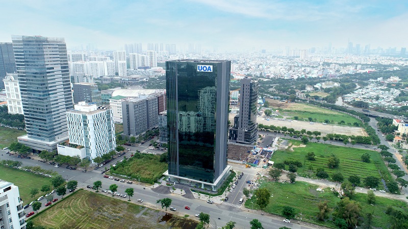 UOA Tower nổi bật như một biểu tượng của kiến trúc hiện đại và bền vững tại trung tâm Quận 7. Với thiết kế đạt chuẩn BCA Green Mark, được cấp bởi tổ chức CCA từ Singapore, UOA Tower tối ưu hóa hiệu quả tiết kiệm năng lượng. Ngoài ra, với tổng mức đầu tư xây dựng lên tới 1.001 tỷ đồng, tòa nhà sở hữu quy mô ấn tượng và kiến trúc tiên tiến hàng đầu.