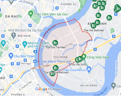 Khu đô thị Thủ Thiêm thuộc Thành phố Thủ Đức, tọa lạc tại vị trí trọng điểm và được xem như trung tâm phát triển mới của thành phố. Với tổng diện tích 657 ha, Thủ Thiêm được quy hoạch để trở thành trung tâm tài chính, thương mại và dịch vụ hàng đầu, thu hút sự quan tâm lớn từ các nhà đầu tư cả trong và ngoài nước. Nằm dọc theo bờ sông Sài Gòn, vị trí này không chỉ mang đến cảnh quan tuyệt đẹp mà còn tạo điều kiện thuận lợi cho hoạt động giao thương và kết nối với các quận trung tâm.