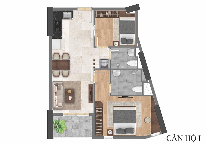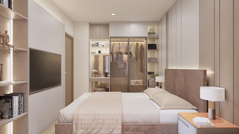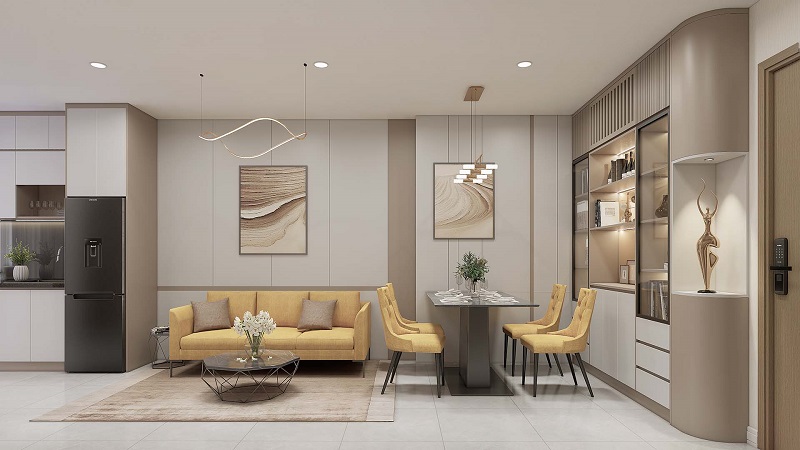 - Căn hộ 1 phòng ngủ: Diện tích khoảng 43 – 47 m², giá từ 1,5 – 1,8 tỷ đồng/căn, phù hợp người độc thân, vợ chồng trẻ hoặc nhu cầu đầu tư cho thuê.