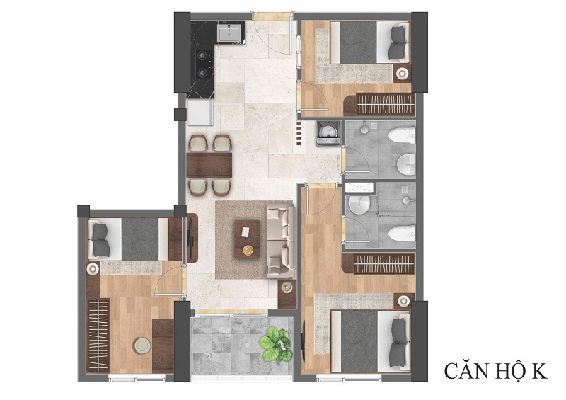 - Căn hộ 3 phòng ngủ: Diện tích khoảng 71 m², giá từ 2,8 – 3,2 tỷ đồng/căn, phù hợp gia đình đông thành viên hoặc khách hàng cần không gian sinh hoạt rộng rãi.